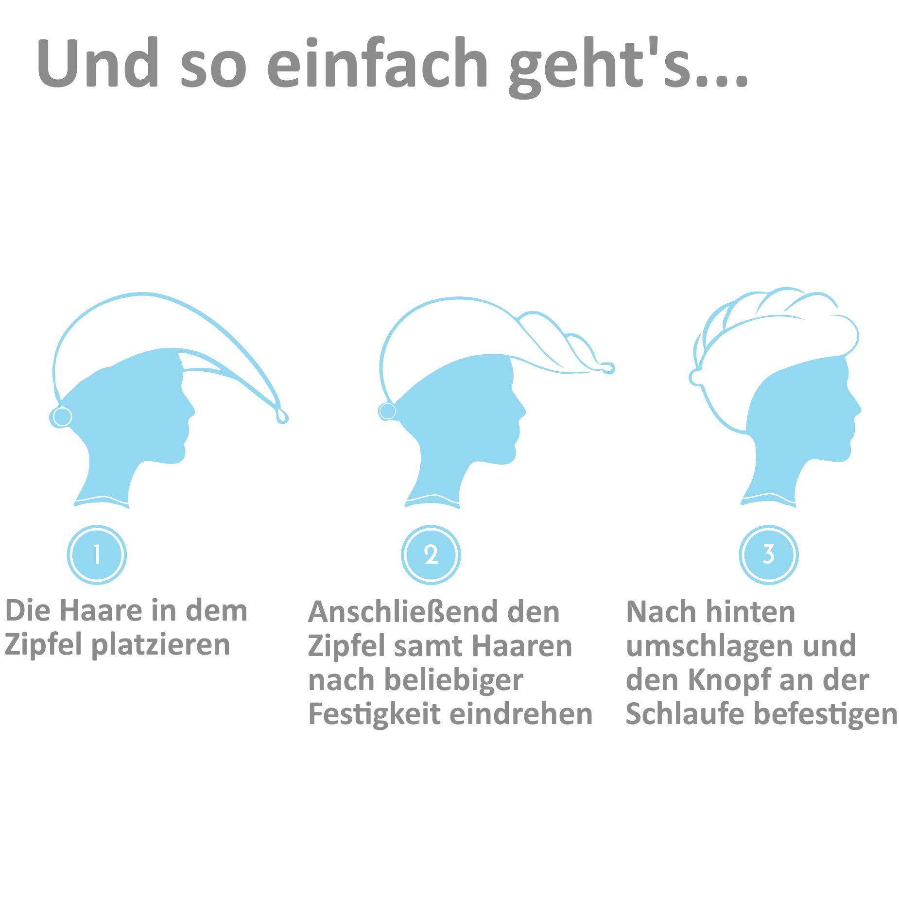 Sowohl beim Schminken als auch beim Rasieren der Beine verhindert der fest sitzende Turban, dass Ihnen störende Haare ins Gesicht fallen.